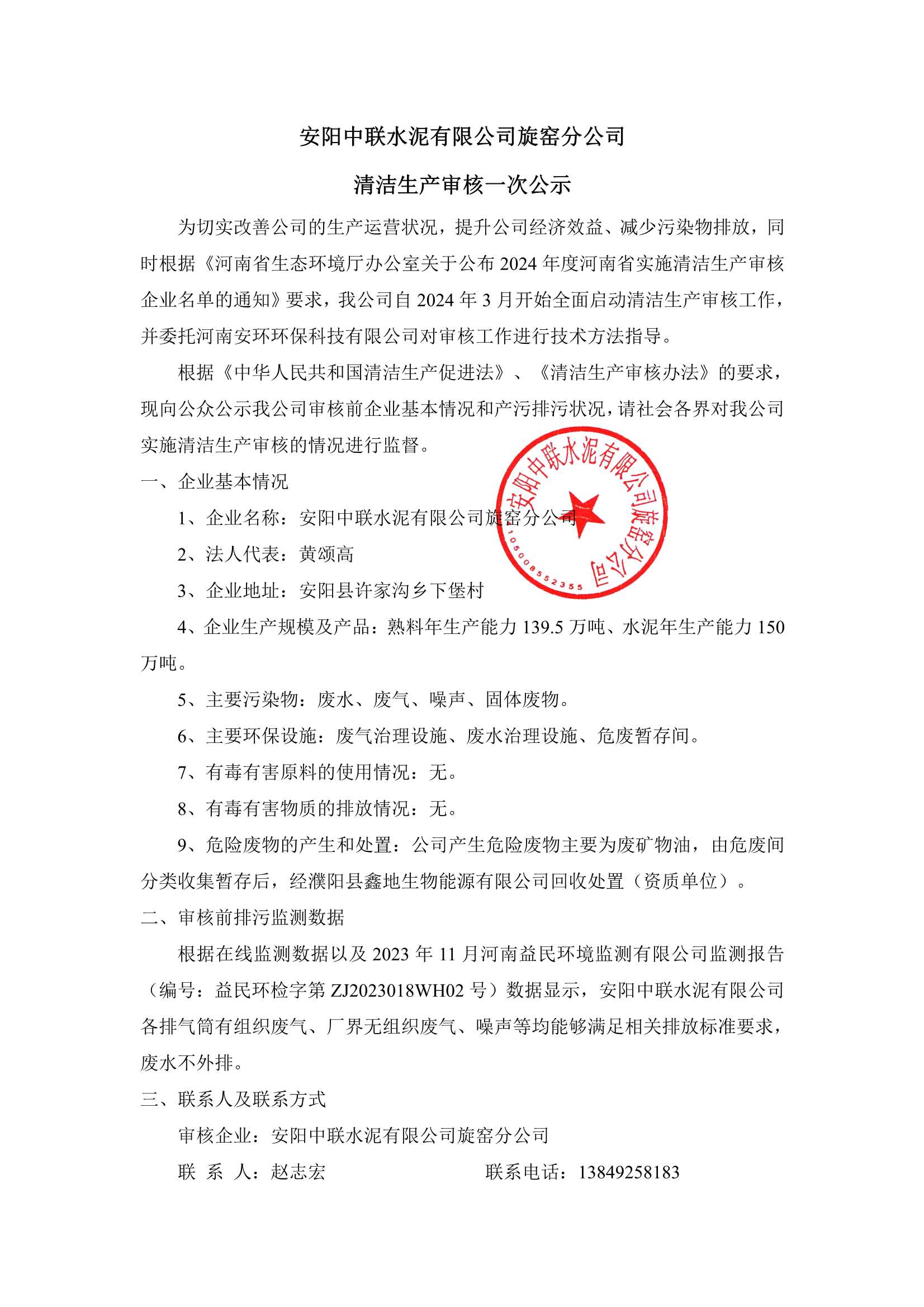 安陽中聯(lián)水泥有限公司(含分公司)2023年度危險(xiǎn)廢物信息公示