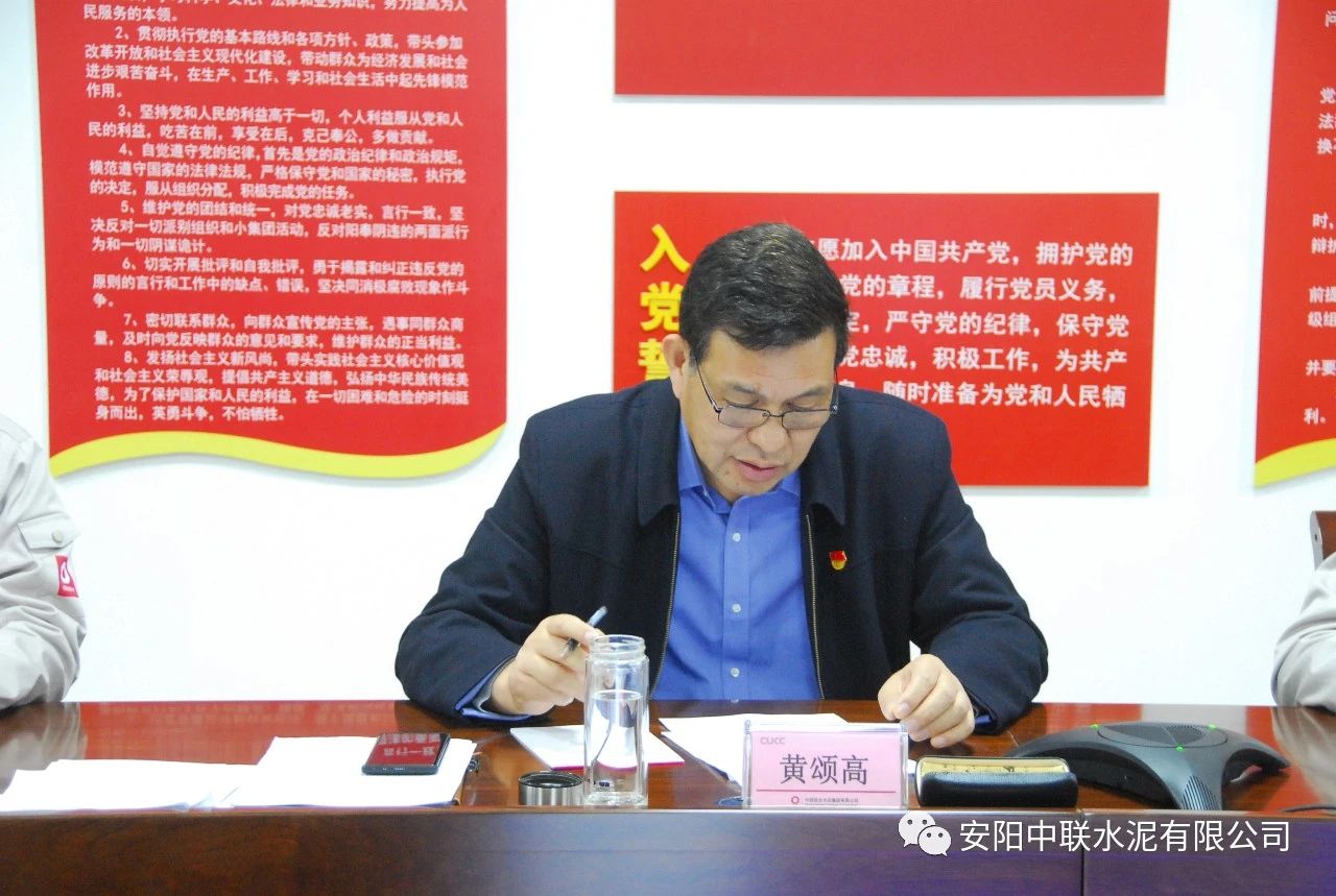 最后,黃頌高代表領導班子作表態(tài)發(fā)言。黃頌高表示,安陽中聯(lián)將在中國聯(lián)合水泥、河南運營管理區(qū)的正確領導下,以此次民主生活會為契機,緊緊圍繞中國聯(lián)合水泥下達的年度目標任務和政治巡視整改工作安排,著力謀劃好公司黨的建設和“水泥+”一體化經(jīng)營發(fā)展大計,加強科學謀劃,深化改革創(chuàng)新,搶抓機遇,堅定信心,迎難而上,確保全年各項目標任務如期完成,以優(yōu)異的成績迎接建黨100周年。